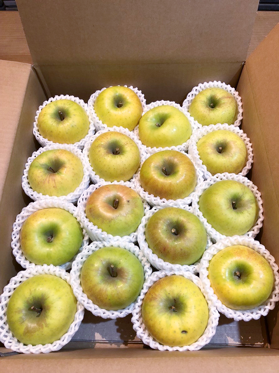 青林は、別名「幻のりんご」とも呼ばれているりんごです。岩手県の一関市において1976年に育成されました。外観は扁円のものが多く小ぶりで、果皮も黄緑色で一部分がほんのりと赤く色づくため、見た目が良いとは言えず生産者が少ない品種となります。しかし特有の芳香と濃厚な甘みがあり、蜜も多く、糖度は15度から18度ほどあります。シャキシャキとした歯ごたえ感があり、上品な風味が口の中いっぱいに広がります。生産地は岩手県をはじめ青森や山形県などでも栽培が行われています。青林りんごは知名度もまだ低く流通量も多くはありませんが味が良く隠れた名品種です。